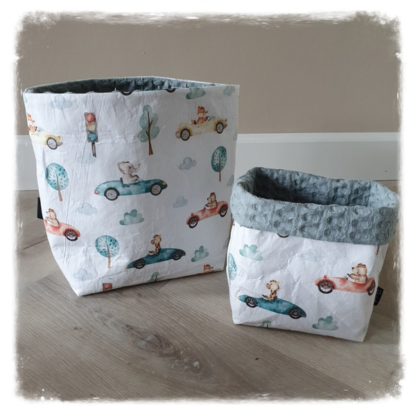 Door gebruik van twee verschillende stoffen kan je de mandjes aan beide kanten gebruiken.
