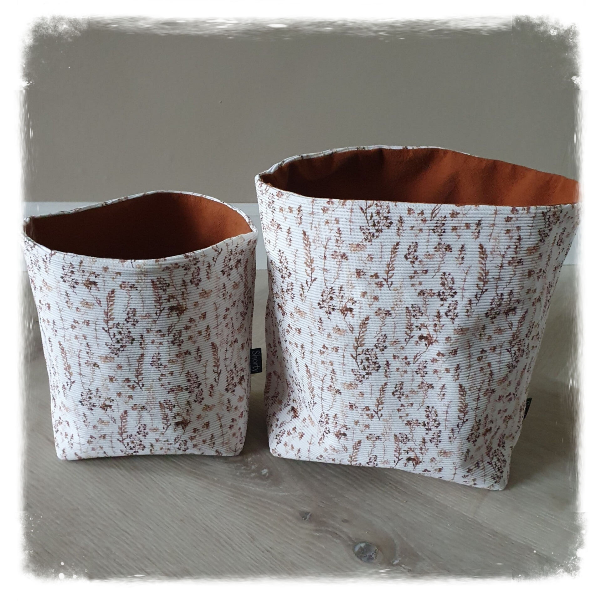 Door gebruik van twee verschillende stoffen kan je de mandjes aan beide kanten gebruiken.