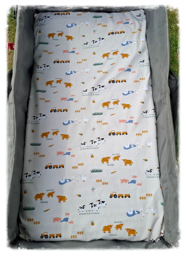Het inlegkussen is samengesteld met twee verschillende stoffen zodat je hem dubbelzijdig kan gebruiken. De vulling is van fiberfill zodat je kindje comfortabelere zit.