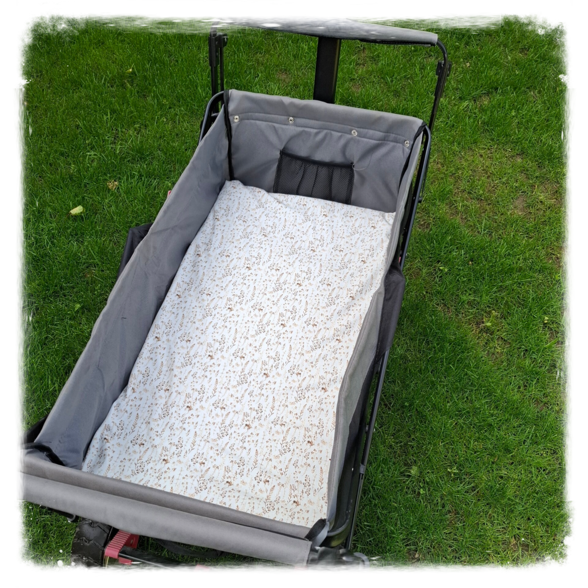 Het inlegkussen is samengesteld met twee verschillende stoffen zodat je hem dubbelzijdig kan gebruiken. De vulling is van fiberfill zodat je kindje comfortabelere zit.