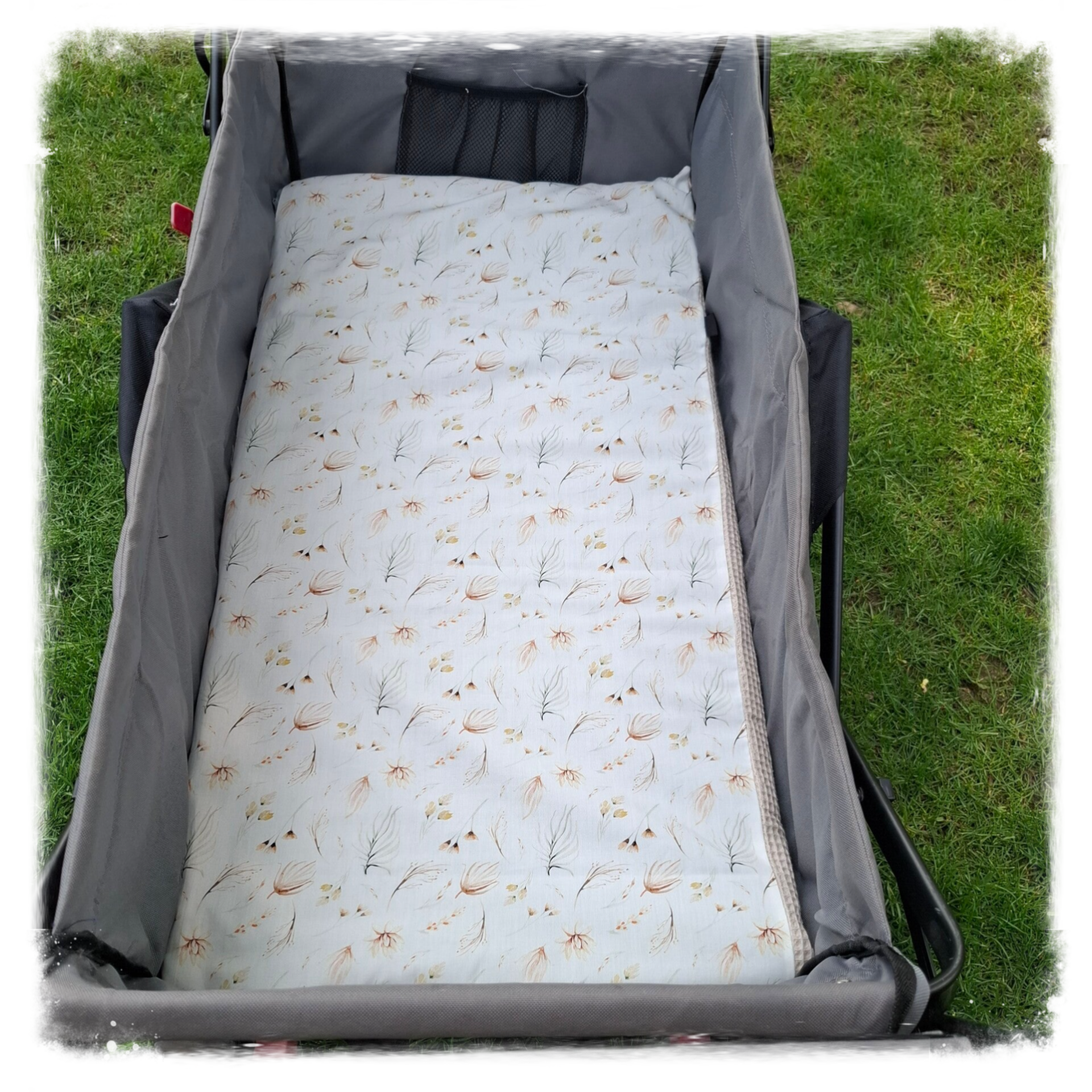 Het inlegkussen is samengesteld met twee verschillende stoffen zodat je hem dubbelzijdig kan gebruiken. De vulling is van fiberfill zodat je kindje comfortabelere zit.