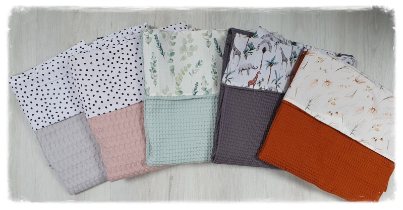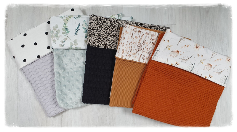 De dekens zijn gemaakt van twee stoffen, zodat je ze dubbelzijdig kan gebruiken.